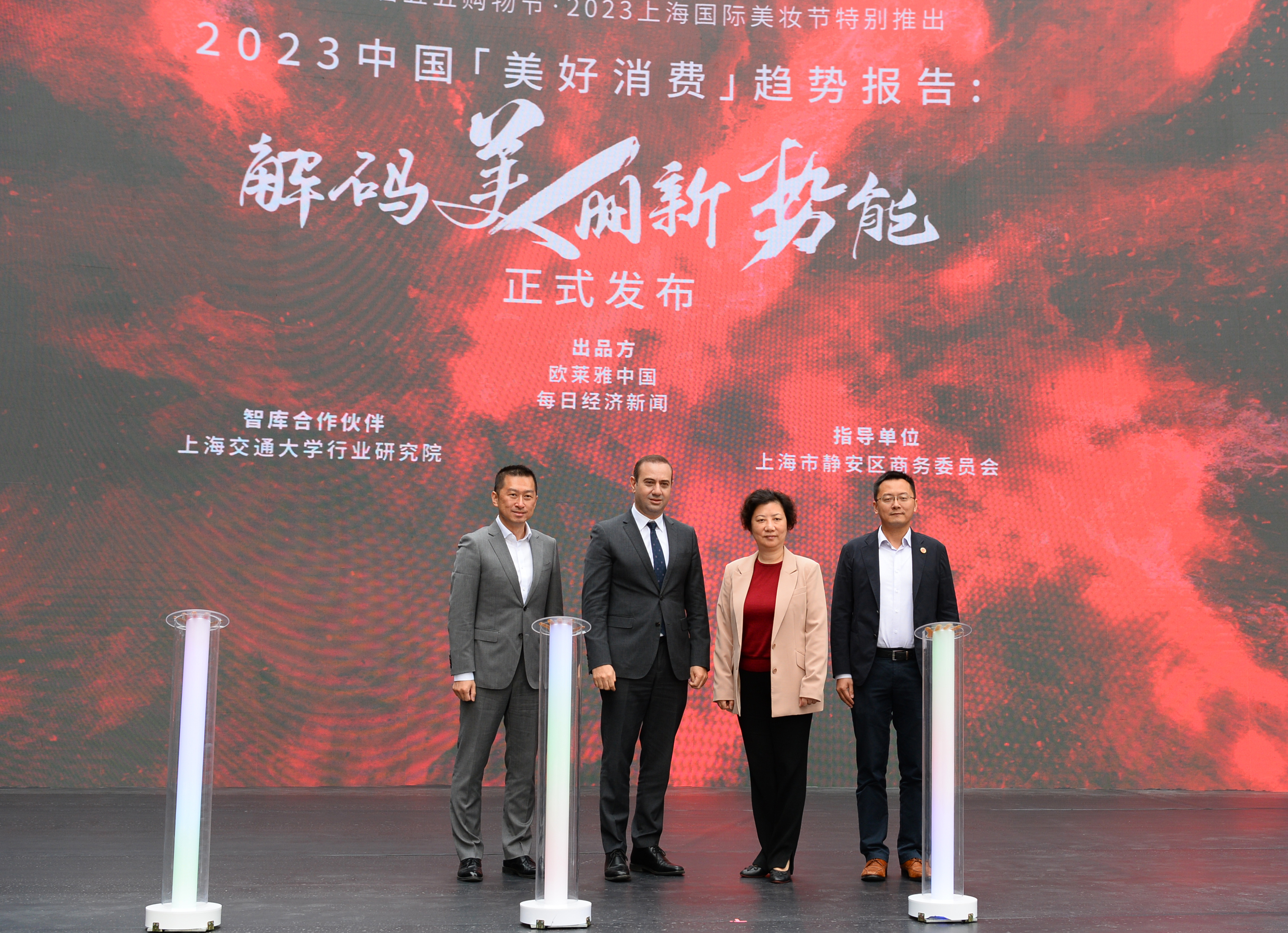 5月11日举行的“2023年上海国际美妆节”启动仪式上,由静安区商务委员会指导,欧莱雅中国、上海交通大学行业研究院以及每日经济新闻联合出品的“美丽新势能”报告——《2023中国“美好消费”趋势报告:解码“美丽新势能”》正式发布。