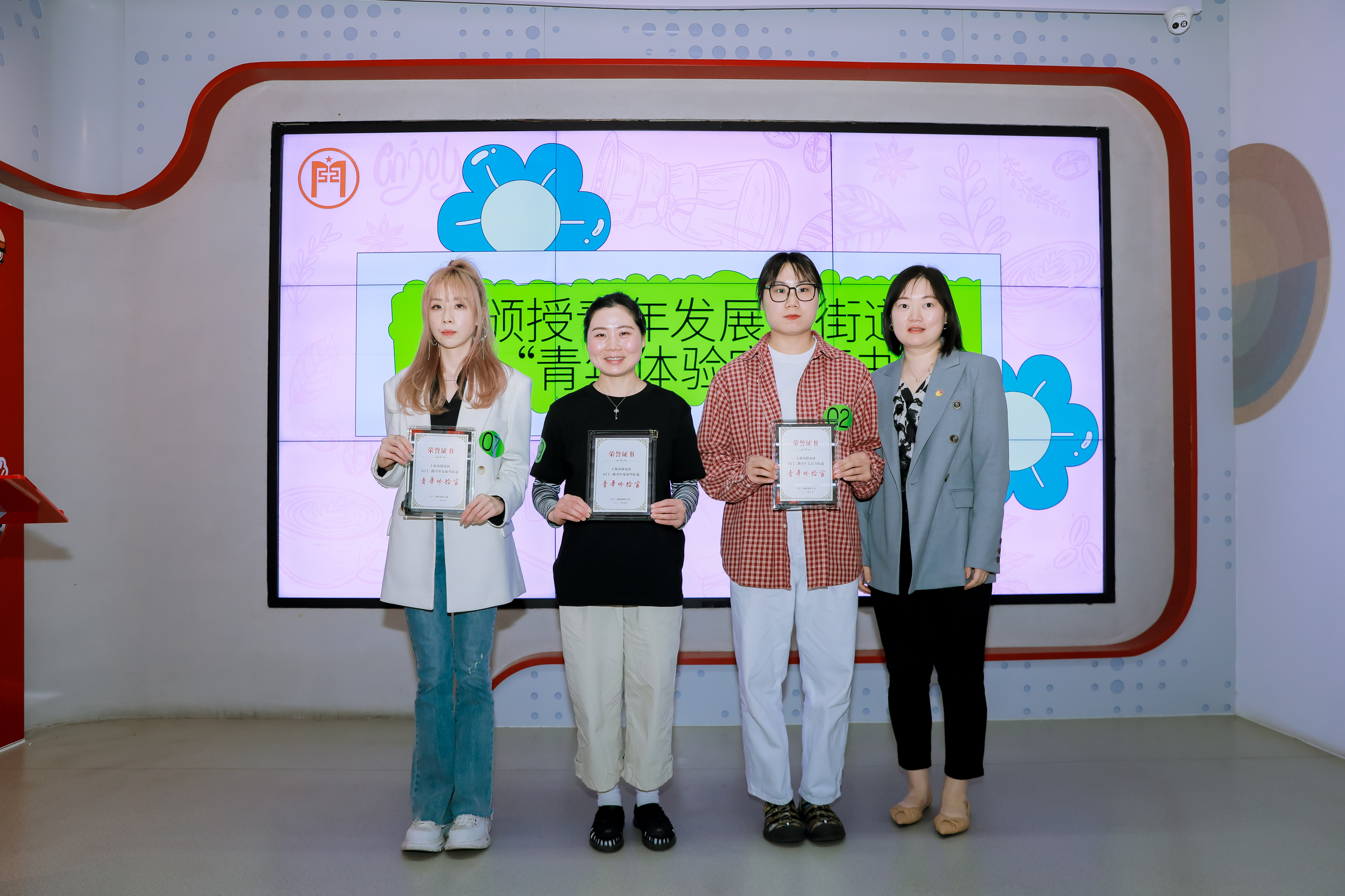 石门二路街道三家咖啡馆主理人获颁“青年体验官”证书。他们将积极发挥咖啡行业从业者的优势特长,用行动、用理想、用热爱,让青春在新时代的广阔天地中纵情绽放,一同参与并见证石门二路街道的青年发展型街道建设。