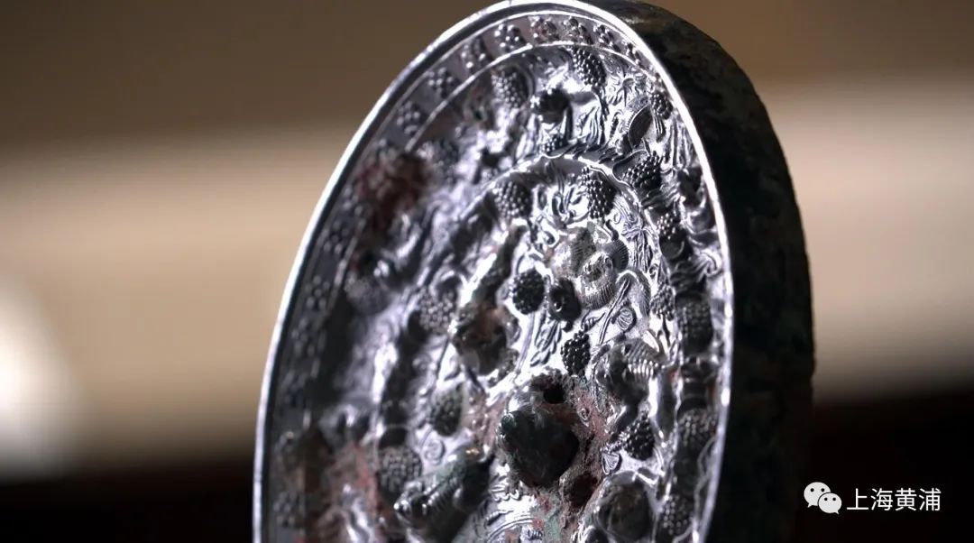 这枚27.3厘米直径的铜镜上出现高浮雕花纹实属罕见。