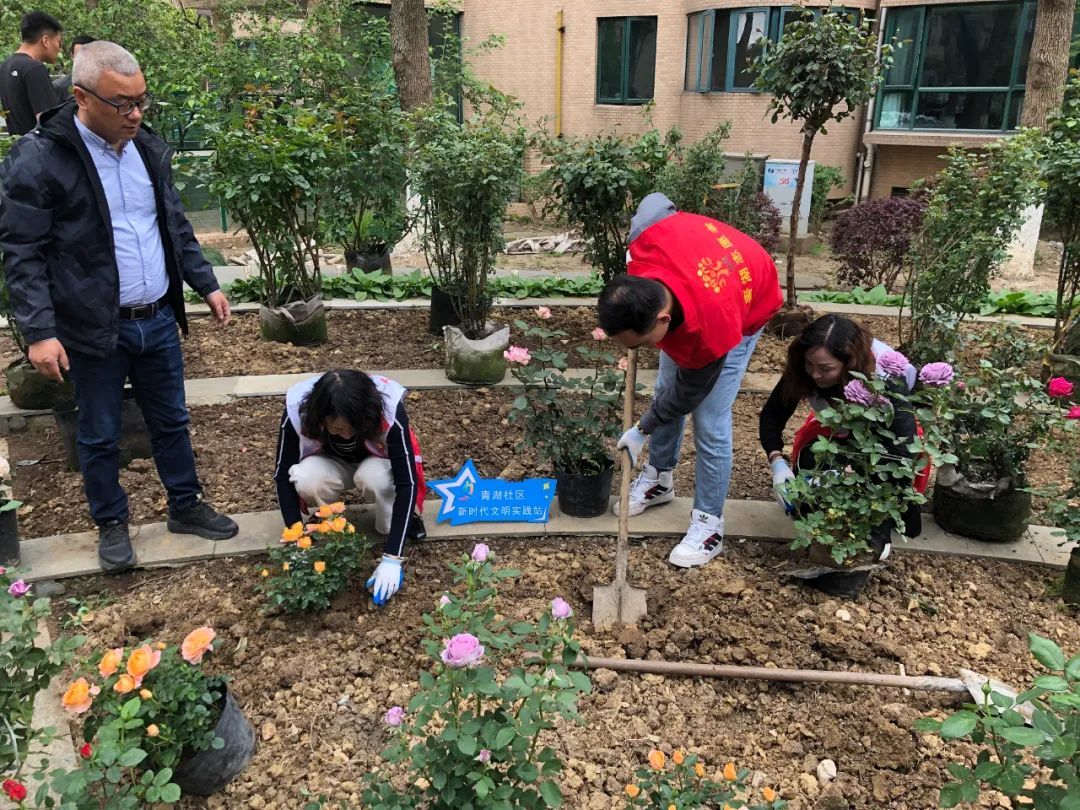 除了“蔷薇源”改造工程,青湖社区成功种植了近100平方米的花草及灌木,在55号楼附近种植了姬小菊、石竹、鼠尾草等常年开花且生命力强的植物,让喜爱散步的居民又新增了一处美景。