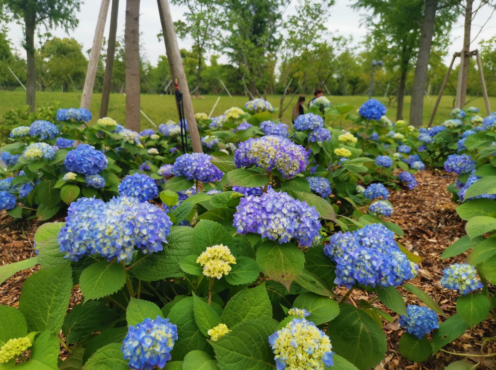 与此同时,绣球花怕晒又怕涝,工作人员采用喷灌浇水的方式,并在花坡上面补种了墨西哥落雨衫,增加了园艺覆盖物。精心养护下,绣球花期可一直持续到6月份。