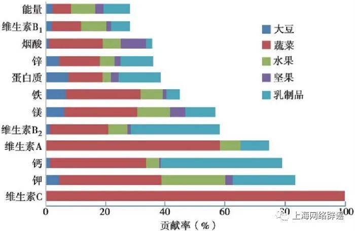 《中国居民膳食营养素参考摄入量》推荐成人维C每日摄入量(RNI)为100mg。在《中国居民膳食指南2022》中介绍了,“2000kcal平衡膳食模式中不同种类食物对膳食部分营养素的贡献率”,蔬菜对维生素C的贡献率几乎达到100%。因此,正常情况下通过平衡膳食就能获得充足的维C,不必为了补充维C摄入大量水果。
