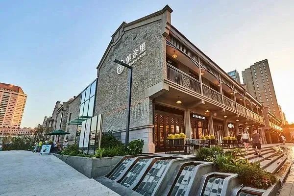 ▲苏州河畔红色屋顶建筑群为复建后的慎余里