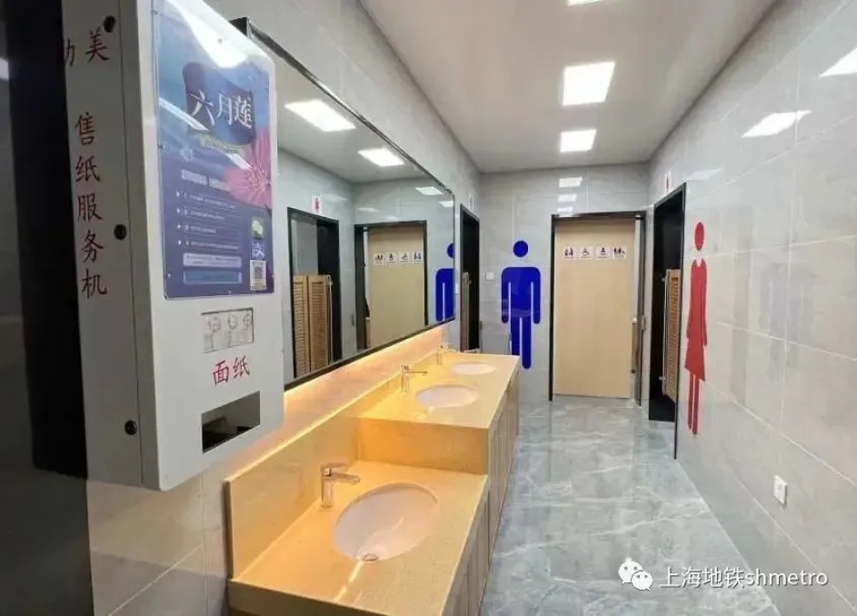 地铁2、10、17号线虹桥火车站站设置了独立的第三卫生间,厕门采用全自动按键开关,设置儿童厕位及洗手盆、婴儿护理板、烘干机等,营造舒适、人性化、有温度的厕所环境。
