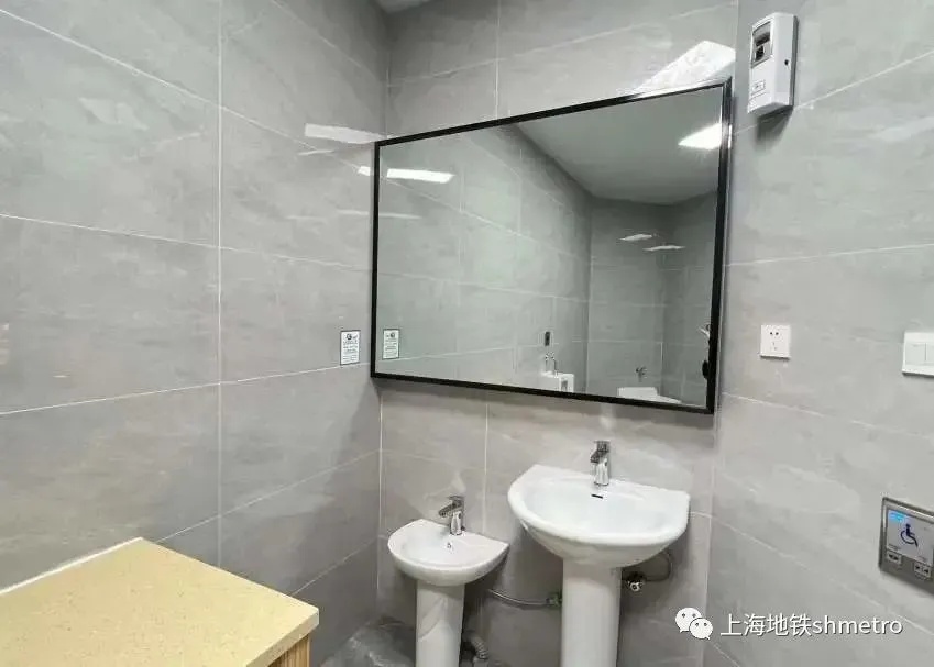 地铁2、10、17号线虹桥火车站站设置了独立的第三卫生间,厕门采用全自动按键开关,设置儿童厕位及洗手盆、婴儿护理板、烘干机等,营造舒适、人性化、有温度的厕所环境。