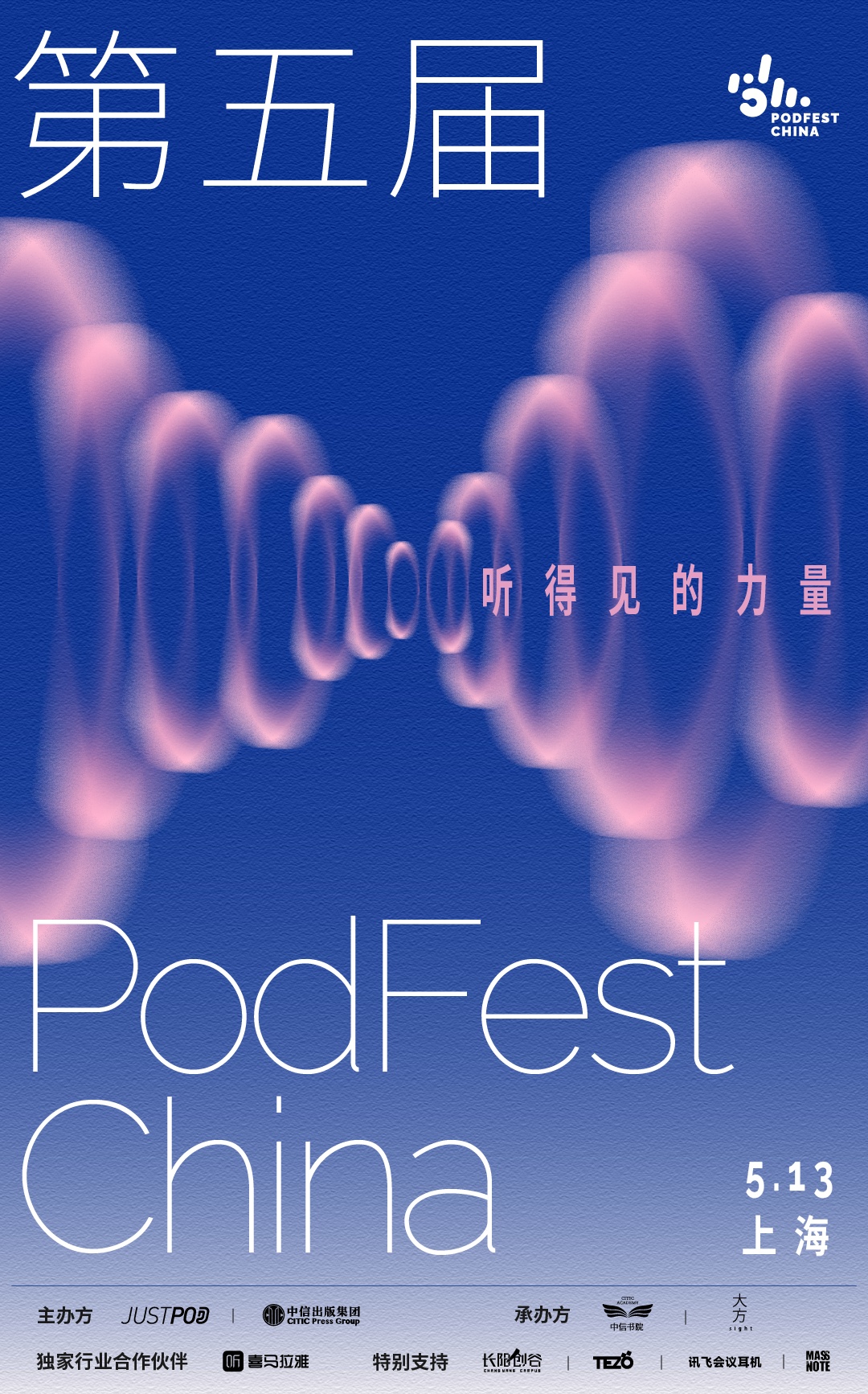 5月13日,第五届PodFest China中文播客大会在上海·长阳创谷举行。本届大会以“听得见的力量”为主题,探索声音的创造力,感受听得到的力量。活动吸引了播客创作者、听众等超过500人参会。