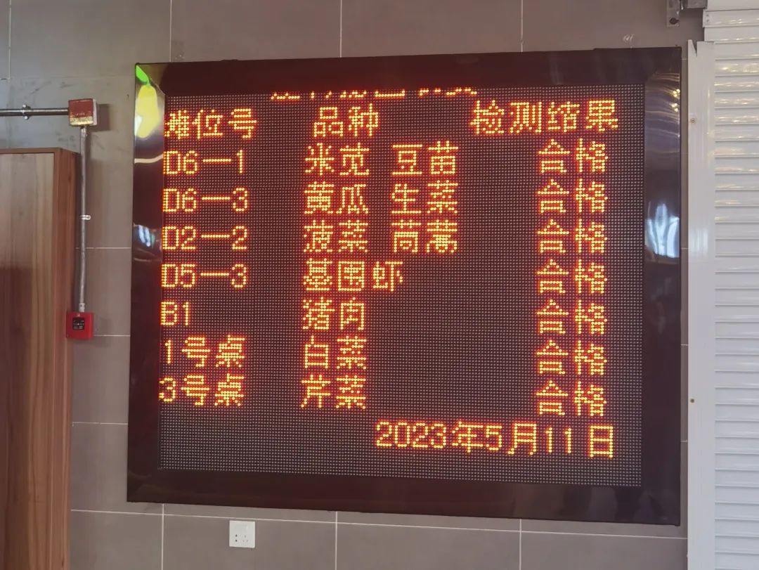 公共电子屏上则展示着每日菜品及检测结果,保障居民们买到合格、新鲜的小菜。“哪家的菜检测合格,哪家不合格,放在大屏幕上,透明公开,我们买菜的人心里就有数,就放心”,家住菜场附近前来买菜的李老伯说道。