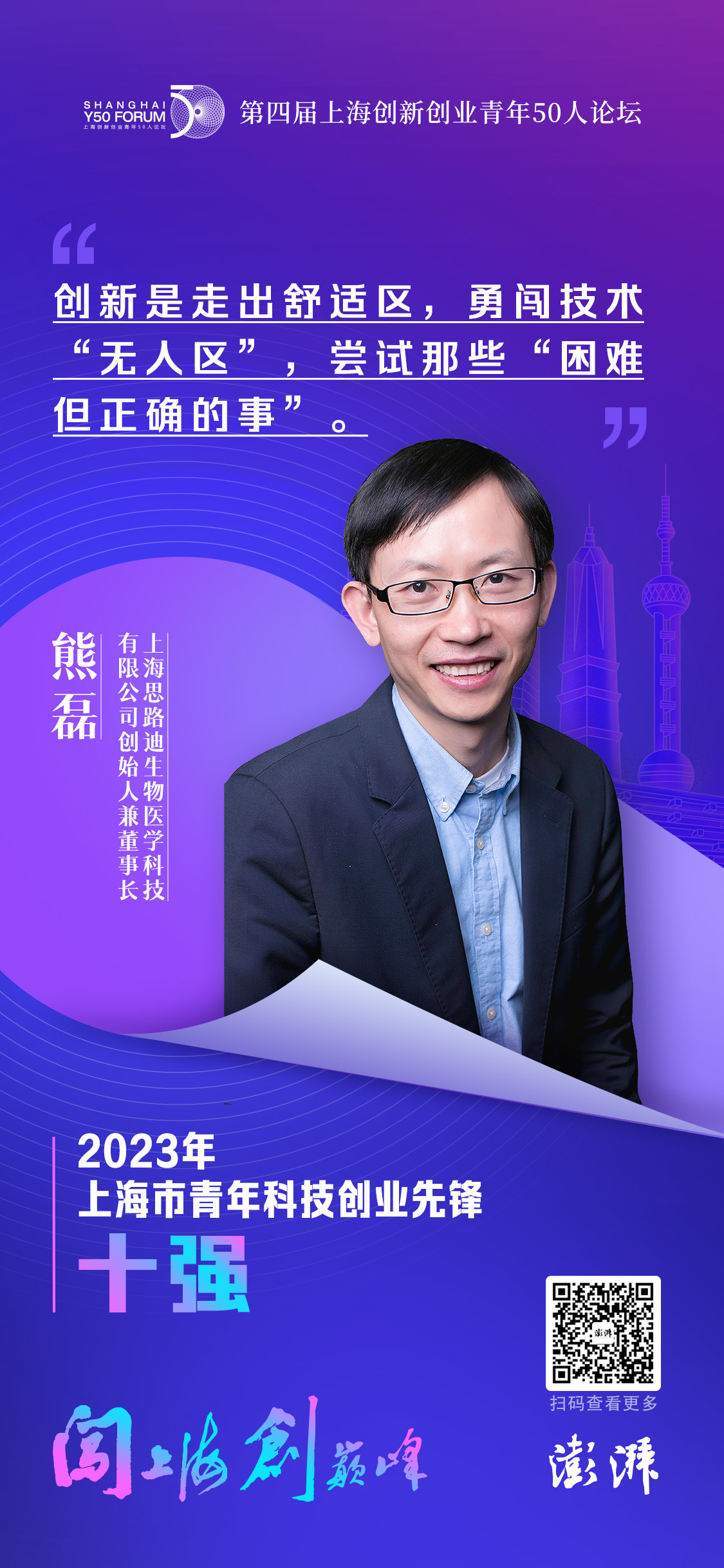 十大先锋获奖人、上海思路迪生物医学科技有限公司创始人兼董事长熊磊说:“非常感谢对青年创业者的信任和鼓励,思路迪生物是创业在上海并一路成长的企业,也是上海科创发展的建设者、参与者、获益者。有幸和诸多青年创业者一起获得‘上海青年科技创业十大先锋’的称号,首先感到是巨大的信任和沉甸甸的责任,也希望和大家一起把这种责任和信任转化为动力,能够更多进行科技核心技术攻关,为中国产业发展做出一些贡献。”