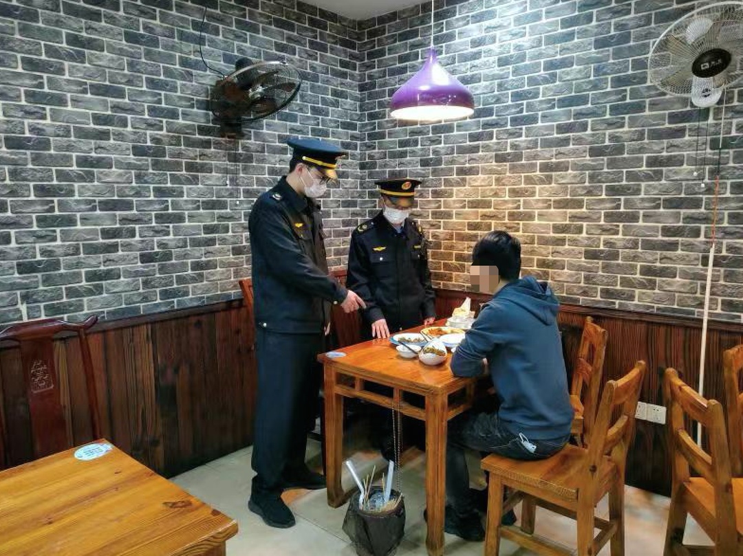2023年3月31日,执法人员对位于共和新路4762号201室的“潮汕大排档”进行监督检查,发现当事人存在消费者自选点餐完成后,仍然劝说消费者超量点餐造成餐食明显浪费的行为,当场向当事人制发《当场行政处罚决定书》,要求当事人改正违法行为,并给予警告的行政处罚。