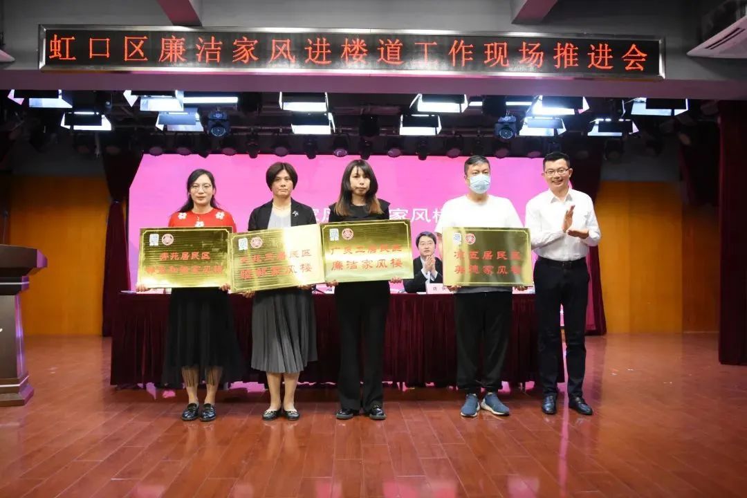 会上,举行了凉城新村社区试点家风楼授牌仪式,向虹口区“最美家庭”代表赠送廉洁家风读物。