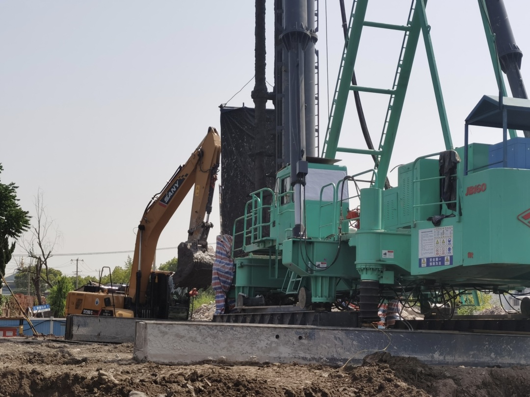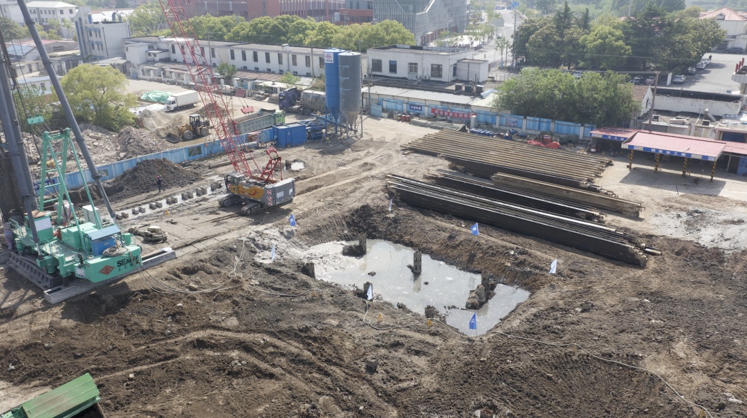 近日,记者来到堡镇初雨调蓄池工程现场,看到技术人员正操作三轴水泥搅拌桩机进行施工,并在水泥土未结硬之前插入H型钢,这样既能防止基坑出现坍塌,又能起到止水效果。另一旁的挖土机则对加固好的基坑进行下挖。据现场技术人员介绍,为减少对地面的环境影响,主体结构蓄水池需要对地面下挖7米至12米。