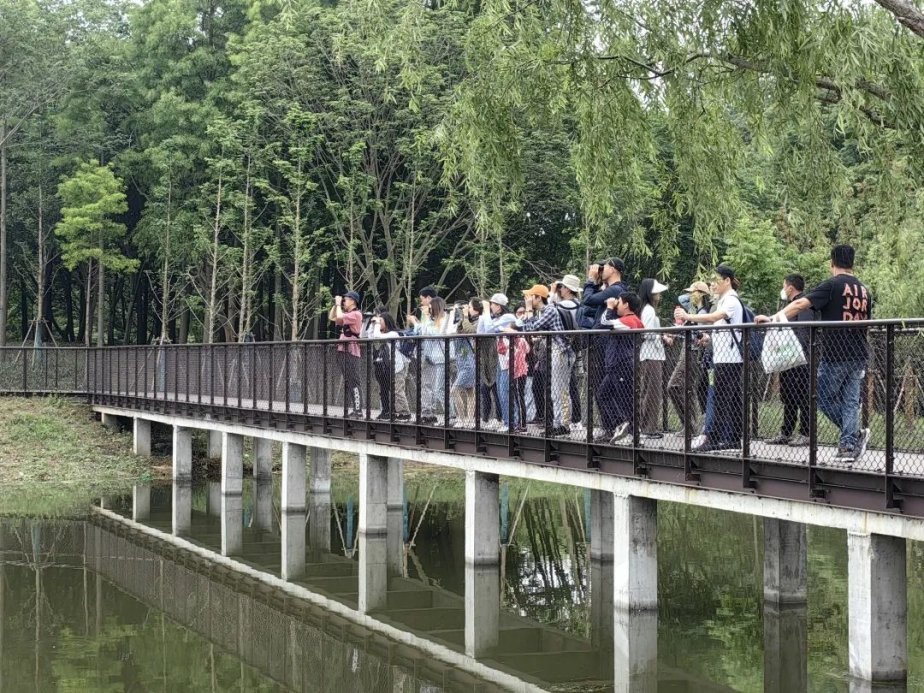 最受市民游客欢迎的,还是金海湿地栖息地的游园打卡活动。金海湿地南园作为重要野生动物栖息地,是带领公众体验、了解生物多样性保护的理想地点。本次活动设点位四个,分别是为科普馆、小微湿地、森林监测站、再野化区域,展示金海湿地栖息地各点位自然景观和生态科普工作。