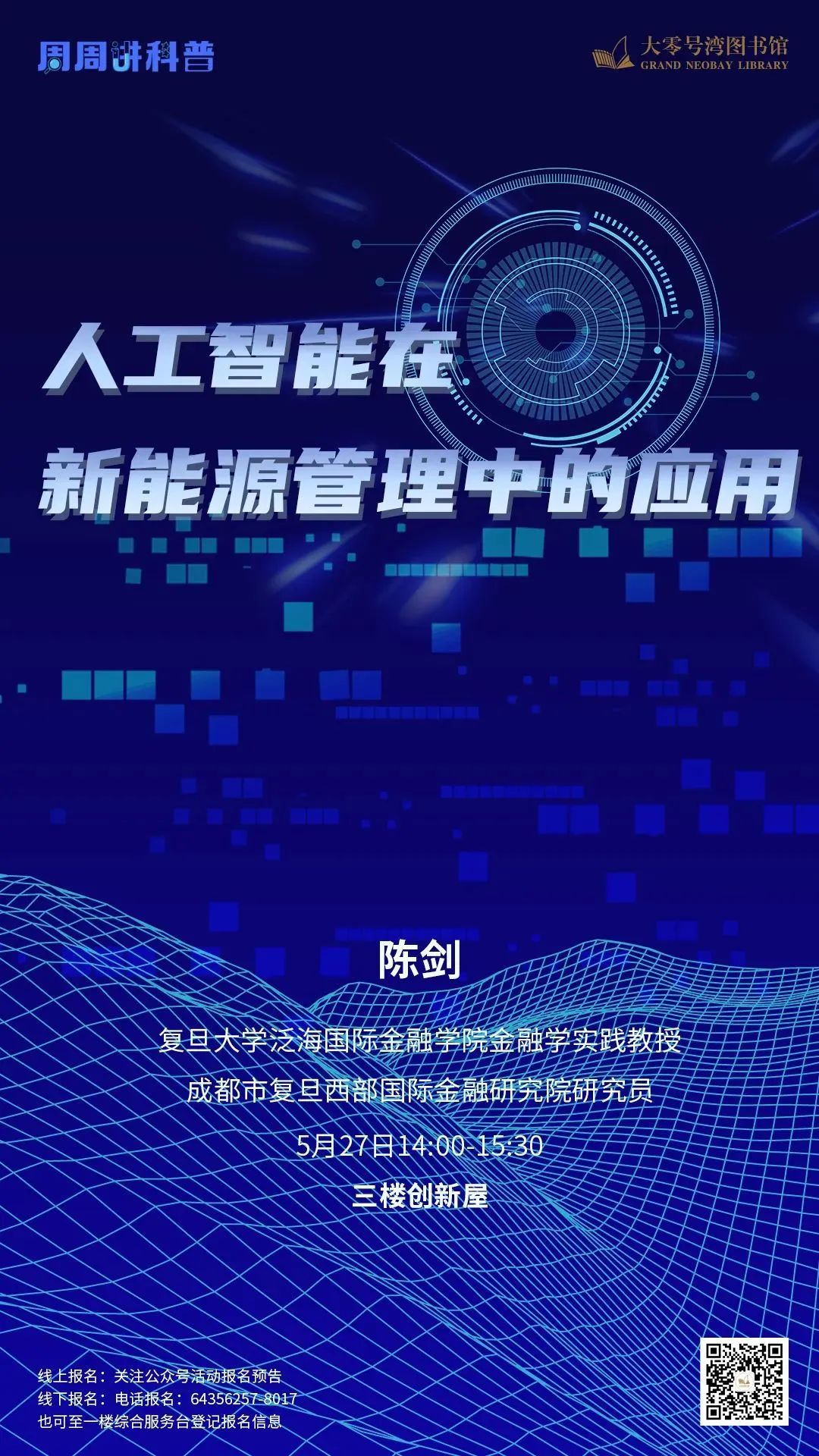 5月27日,复旦大学陈剑教授将在大零号湾图书馆为读者带来“人工智能在新能源管理中的应用”主题讲座。让我们共同了解,在当代背景下,人工智能技术如何崭露头角,成为新能源管理中的重要工具。