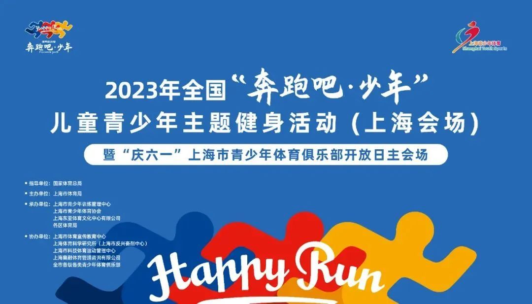 2023年全国“奔跑吧·少年”儿童青少年主题健身活动(上海会场)暨“庆六一”上海市青少年体育俱乐部开放日活动由国家体育总局指导,上海市体育局主办,上海市青少年训练管理中心、上海市青少年体育协会、上海东亚体育文化中心有限公司、各区体育局承办。活动旨在不断推进青少年体育知识技能普及,加强科学健身指导,促进青少年身心健康,传播海派体育文化,弘扬奥林匹克精神和中华体育精神,营造全社会关心支持青少年体育发展的良好氛围。5月27日-6月4日全市各区将开展丰富多彩的活动,通过“主题化、多元化、亲子化”的运动项目体验,让参与家庭体验运动、爱上运动。
