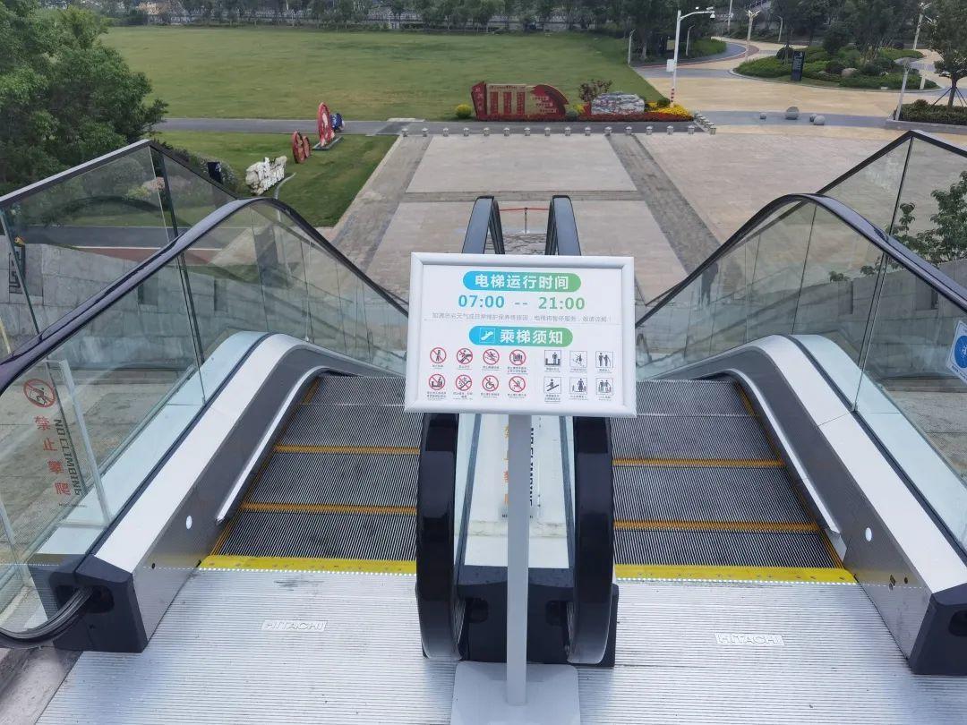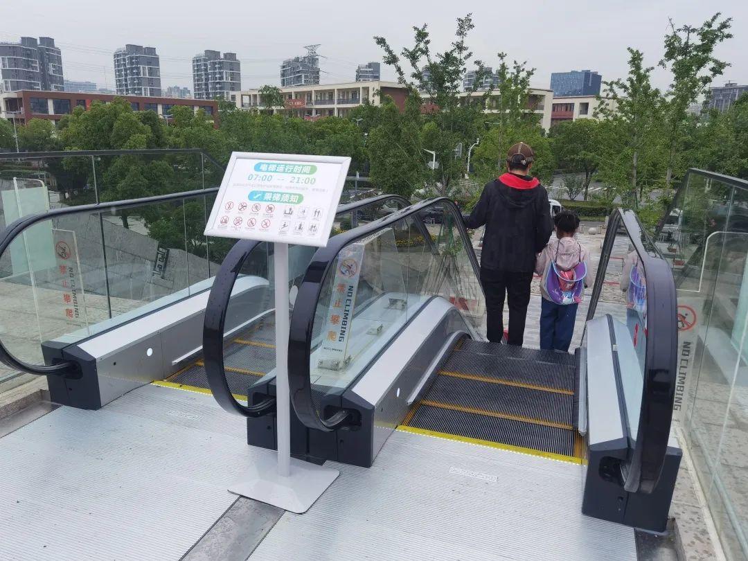 自动扶梯每天7点至21点运行,运行期间,两侧扶梯处都有环城水系公园巡查员执勤,提醒市民规范乘用扶梯,对扶梯进行日常检查,应对突发情况。