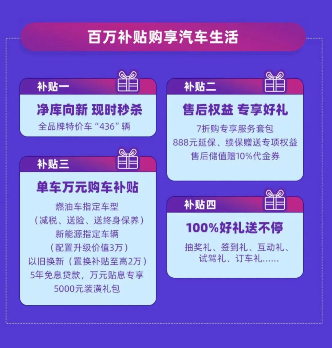 据主办方介绍,5月26日—30日,在为期5天的活动中,各参展企业也拿出诚意,将优惠福利大礼包赠送消费者,包括品牌特价车、专享服务套包、置换补贴、装潢礼包、贴息专享等。