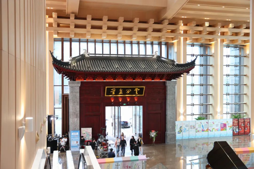 以“新中式”作为美学风格的云间会堂文化艺术中心,通过借景手法,将公园景观引入,整体看去宛若一幅意境优美的山水画。从空中俯瞰,建筑的屋顶呈绵延起伏之势,如打开的书籍,又犹如连绵逶迤的松郡九峰。眼下,艺术展厅里,上海视觉艺术学院学生的优秀作品正在展出,古典与新潮碰撞出迷人火花。