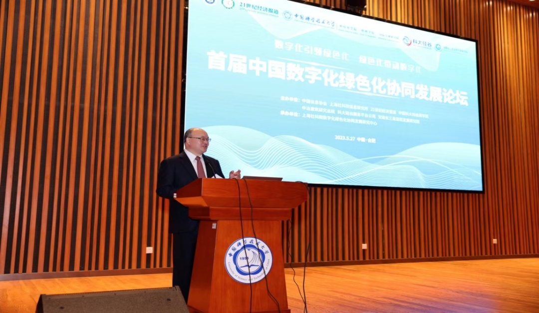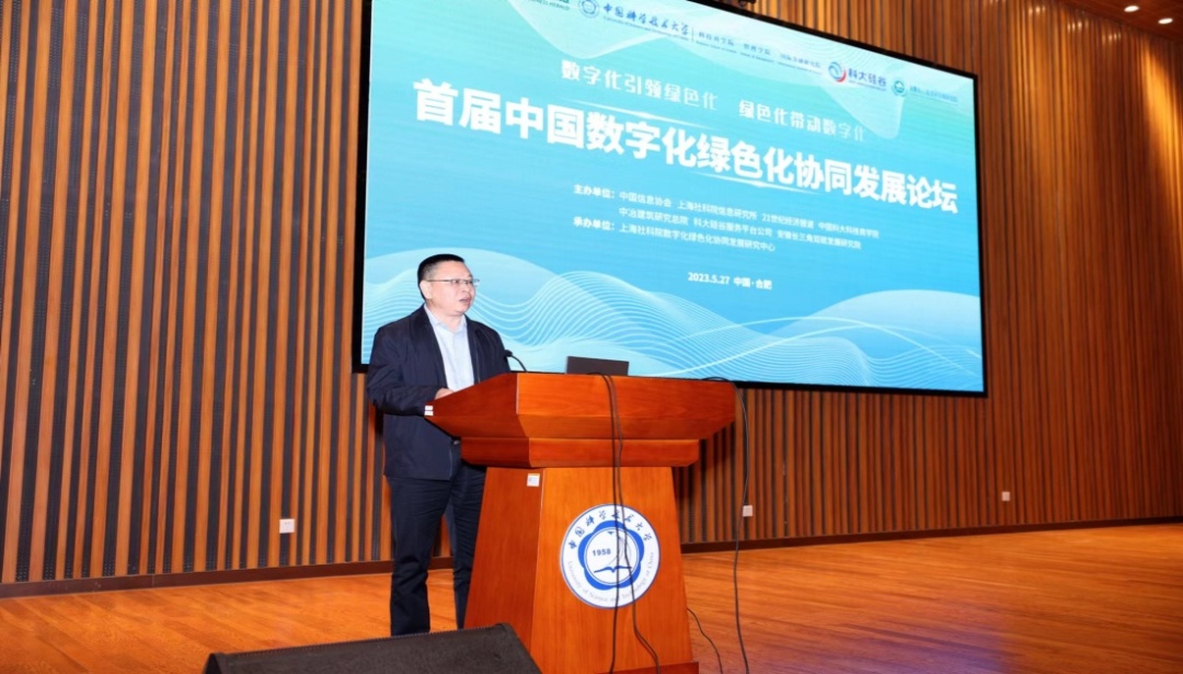 5月27日,首届“中国数字化绿色化协同发展论坛”在安徽合肥中国科技大学国际金融研究院报告厅举行,论坛主题聚焦数字化引领绿色化、绿色化带动数字化的双化协同理论与实践创新。论坛由中国信息协会、上海社科院信息研究所、中国科大科技商学院、中冶建筑研究总院、科大硅谷服务平台公司、安徽长三角双碳发展研究院等七家机构共同创办,上海社科院数字化绿色化协同发展研究中心承办。