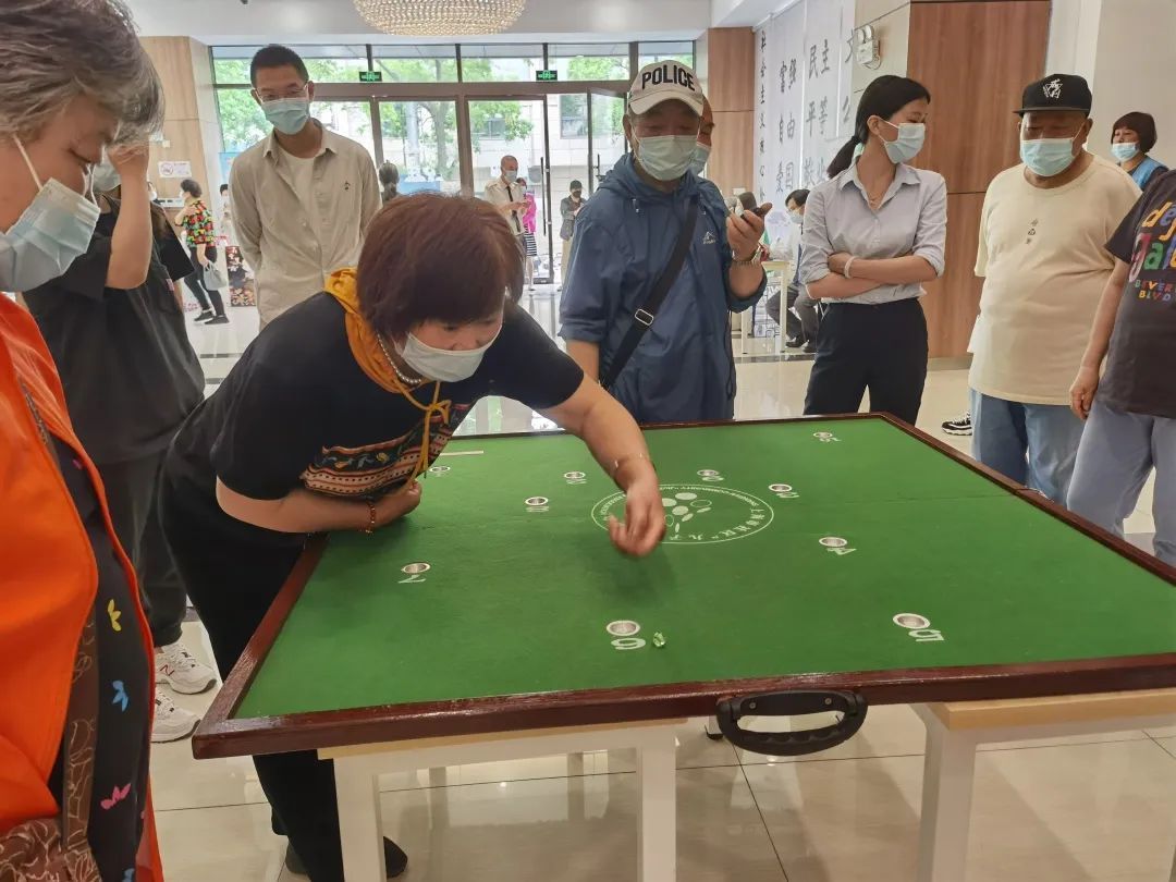 打弹子,也就是打玻璃弹珠,在坑坑洼洼的泥地里,拿出心爱的弹珠,玩到裤子磨破被父母“骂几句”是男孩子们的童年记忆。虽然泥地变成了干净的桌子,但是打弹珠的乐趣一点也没有减少。活动现场,大家你一次我一次轮流上场,在欢乐的笑声中再次感受孩提时代的游戏带来的乐趣。市民杨阿姨得知社区有九子游戏就第一时间报了名,她告诉记者,自己小时候就特别喜欢玩打弹子、掼结子这些游戏,一个人都能在弄堂里玩很久,要是有玩伴一起,玩一个下午都不会觉得无聊。