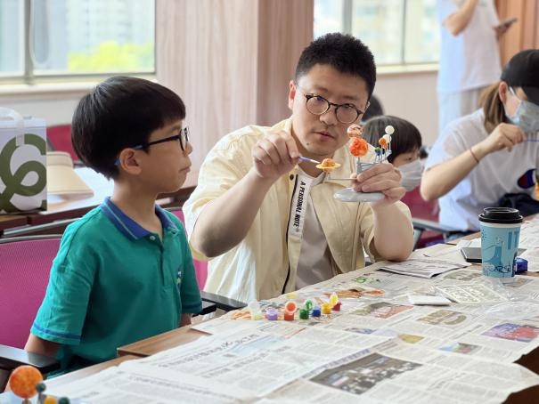 通过学习,萌娃们了解了太阳系八大行星的形态、组成结构、对应的颜色和大小。之后,在工作人员的指导下,大家还动手组装和绘制了太阳系行星仪模型。“通过手工制作,可以让孩子更直观认识行星,也更能培养他的科技兴趣,这样的活动很有意义。”一名家长表示。