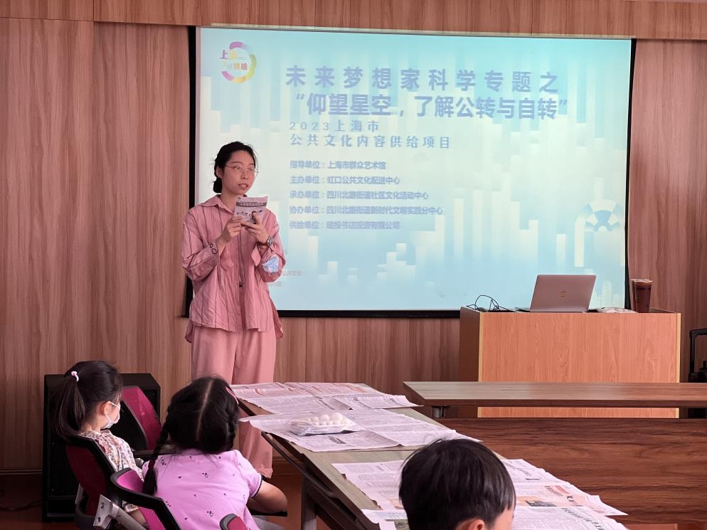 日前,一场以“未来梦想家科学专题之仰望星空,了解公转自转”为主题的儿童节亲子活动在四川北路街道社区文化活动中心举行,来自社区的一群萌娃在父母的陪伴下,和建投书局的讲师共同开启了一场探索“星球”奥秘之旅。