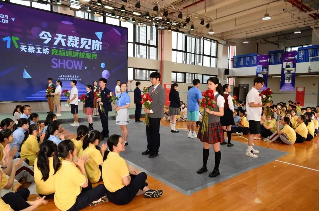 6月1日下午,久隆模范中学“天裁工坊”竞标路演校服秀在学校体育馆举行。现场,19名学生设计师和16名学生模特在T台上自信地展示了团队设计的校服、讲述了设计创意及背后故事、更秀出了属于少年们独有的青春与活力。
