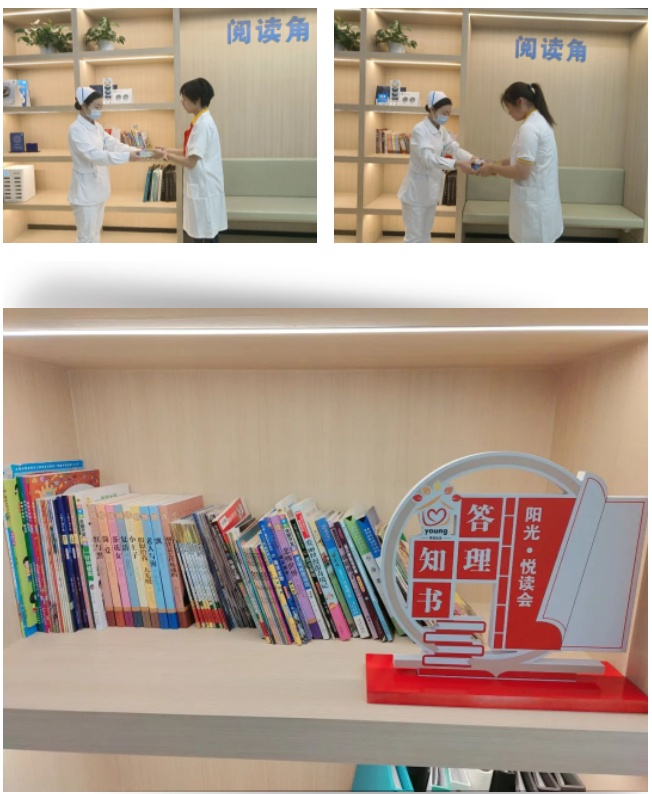 当天,队员们自发组织了书籍捐赠仪式,把自己喜爱、闲置的书籍捐赠给了医院,丰富了阅读角的存书量,为前来医院的孩子们打造一个温馨舒适的阅读空间。