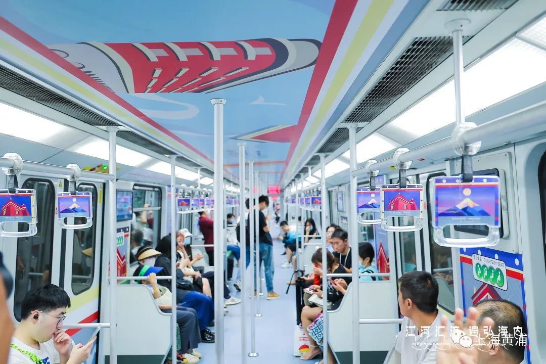 由于本次展览设两个场馆、同步开幕,主办方还别出心裁地打造一列萨迦艺术列车。列车内选取了萨迦标志性的红、白、灰三色外墙建筑,寓意吉祥的萨迦白海螺和珠峰圆月在车厢内外交相辉映。市民游客可在上海市历史博物馆结束参观后,前往地铁一号线人民广场站,偶遇萨迦“专列”,沉浸式体验萨迦人文风情,至常熟路站下车后步行5分钟,抵达上海市徐汇区艺术馆继续参观。“这样的看展体验还是头一次,看到这个列车时很意外,而且车内配色也十分应景,还配有汉藏英三语的词汇,蛮有趣的。”说罢,观展偶遇“专列”的李女士在车上饶有兴趣地学起了藏语。