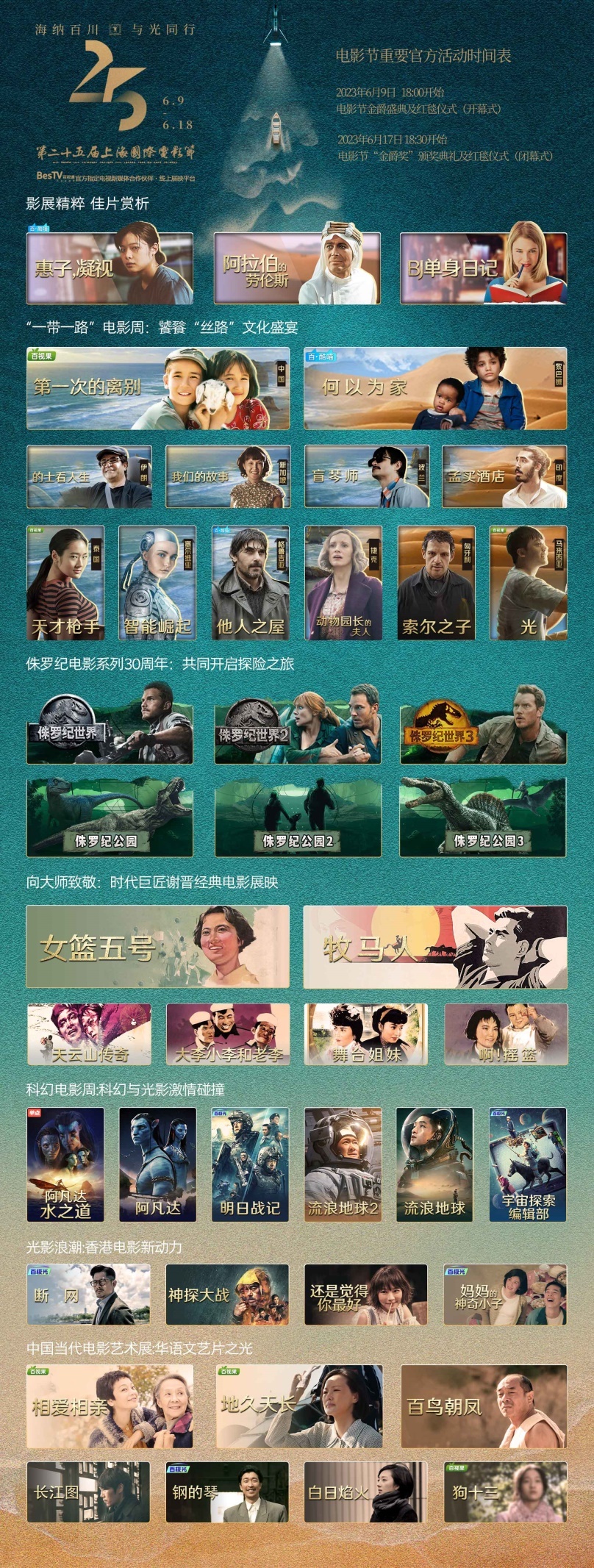 百视通与上海国际电影节已连续五年合作,百视通始终致力于通过全媒体平台的综合效能,让更多人感受光影魅力,一起与“光”同行。今年,百视通挑选了数十部经典佳片,紧密呼应第二十五届国际电影节各项特别策划单元,围绕历年来上海国际电影节展映影片进行7大主题的策划,打造与线下交相辉映的云上电影节。