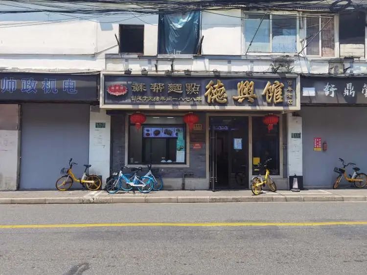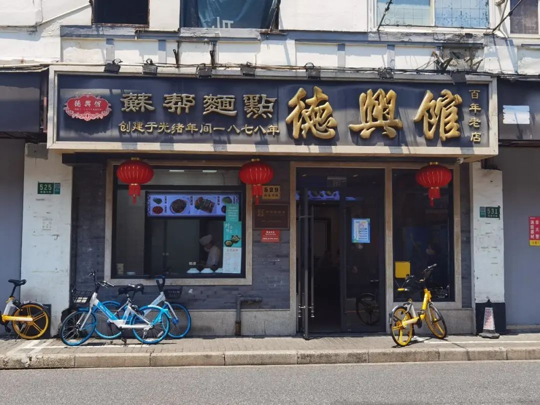 工作日的中午,德兴馆福建路店低调地营业着,门口停放着几辆共享单车,阳光洒在有了年头的店招上,“创建于光绪年间一八七八年”的字样十分醒目。