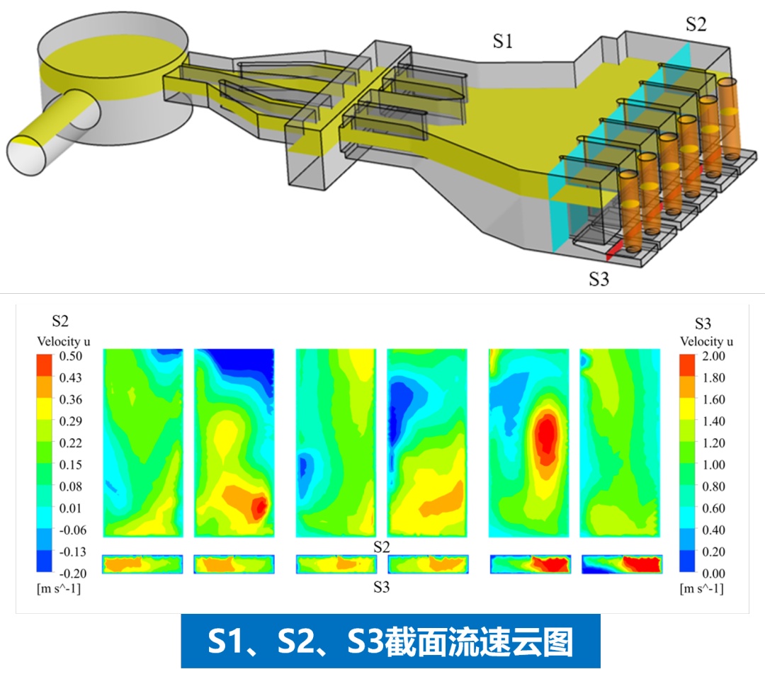 由于泵站布置空间相对紧凑,利用了三维数值模型模拟,增设了导流设施,改善了泵站的水流状态,保障了泵站建成后高效、安全的运行。