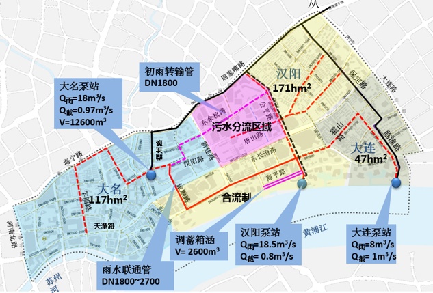 改造工程立足大名排水系统,促进了北外滩联合提标、联合控污。大名、汉阳、大连三个系统因地制宜,控污截污泵、调蓄池、调蓄管、联通管共同发挥初雨截流功能,保障整个北外滩地区排水安全和水环境质量!
