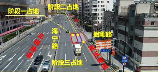 改造工程中的顶管对接工程,如果按照常规方案,顶管接收坑施工需停放机械,堆放材料,施工场地占地范围较大,占用时间较长,需占据海宁路3条机动车道;海宁路为城市主干道交通流量较大,高峰时期本就有拥堵现象,常规方案必然会对海宁路交通通行造成极大影响。