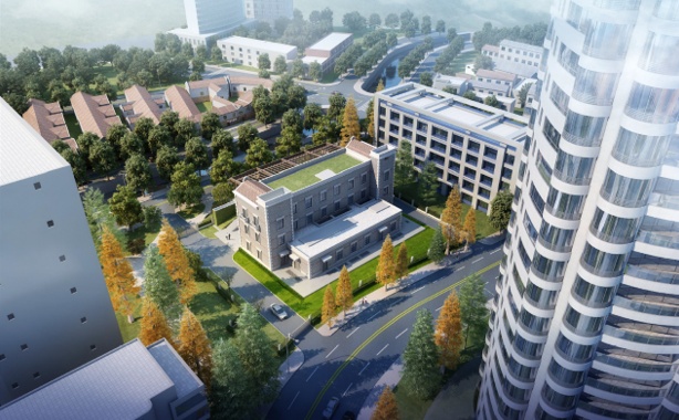 泵站红色坡顶与虹口区山寿里风格协调,丰富的古典细节体现精致的海派风情,灰色墙体又与周边现代建筑色彩统一。将泵站融入到北外滩环境中。建筑西侧构架与花园结合,营造出宜人的停留空间。构架同时可用作绿植攀爬架,减少夏季西晒降低能耗。