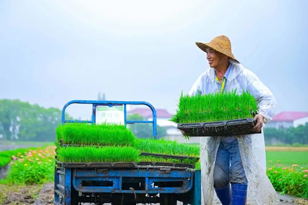 秧好一半禾,苗好七分收。起秧、卷盘、摆放、装车作业……整齐的秧苗在阳光下显得生机勃勃,村民们满心欢喜,期待孕育丰收的稻穗。
