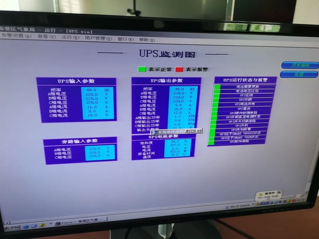 临时供电接上了,气象服务就有了保障。为了避免突发情况,区气象局业务人员还通过机房环控仔细观察UPS旁路电压情况,与应急值班人员共同加强用电监测……