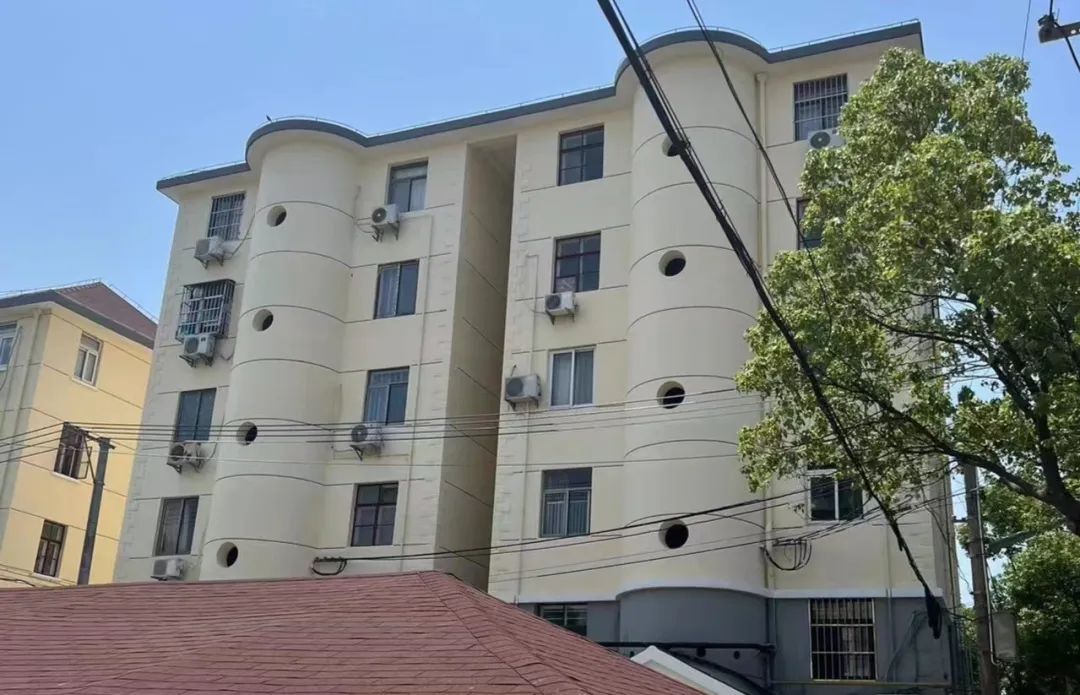 设计团队通过实地勘测社区内外情况,结合横沙“五福”特色,最终设计出立面更新的设计方案。经过几个月的施工,楼体淡黄色的墙面在阳光的映衬下熠熠生辉,墙面上的“福”字设计,也让墙面颇具层次感。