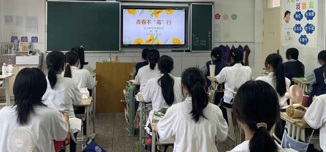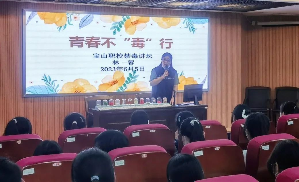 国旗下的禁毒主题教育。宝山职校利用升旗仪式契机开展了一次禁毒主题教育。团委老师针对系统讲解了禁毒防毒知识。学生代表作了学习体会发言,表示作为一名中学生,要深刻认识毒品危害,谨慎交友,构筑牢固的心理防线。