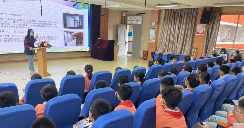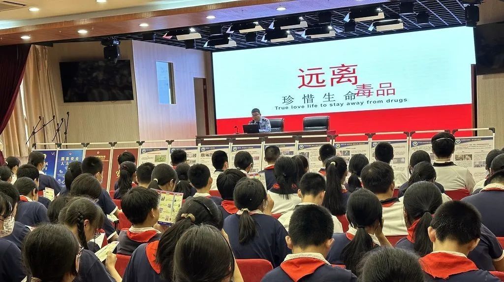 在第36个国际禁毒日来临之际,为强化未成年人毒品预防教育,营造浓厚校园禁毒氛围,宝山区淞南镇组织禁毒社工、民警在中小学开展专题讲座、知识问答、模具展示、宣传片展播、升旗仪式主题教育等内容丰富、形式多样的禁毒宣传活动,共同撑起未成年人成长的蓝天。