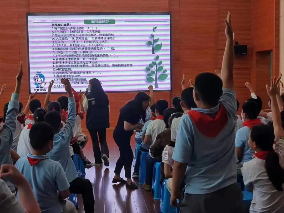 知识问答加深理解。禁毒社工和民警分享工作中的真实案例,并组织学生们开展禁毒知识竞赛,考考大家对毒品的理解和认识。“毒品有鸦片、海洛因、冰毒等”“毒品会危害我们的身体”“从宣传片中学到,笑气也是毒品”……学生们积极踊跃发言,通过深入学习,切实增强识毒、拒毒、防毒的能力和意识。