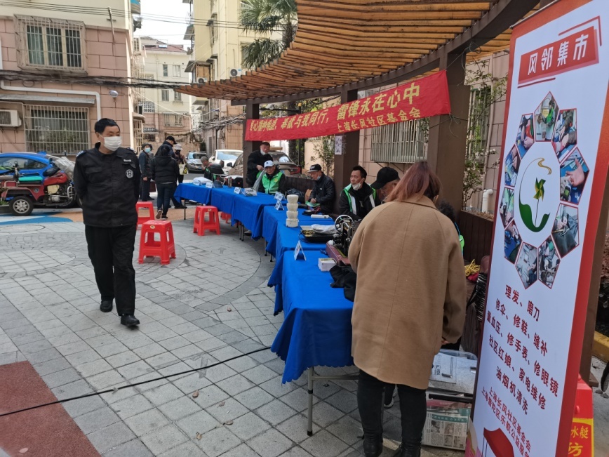 为了发扬磨刀、修伞、理发、缝补等传统服务项目,长风新村街道组织“风邻集市”,将街头巷尾的传统手艺人聚集在一起,并把他们送到居民身边,一方面再现传统手艺的价值和魅力,另一方面也解决了老年居民生活中的“急难愁盼”。