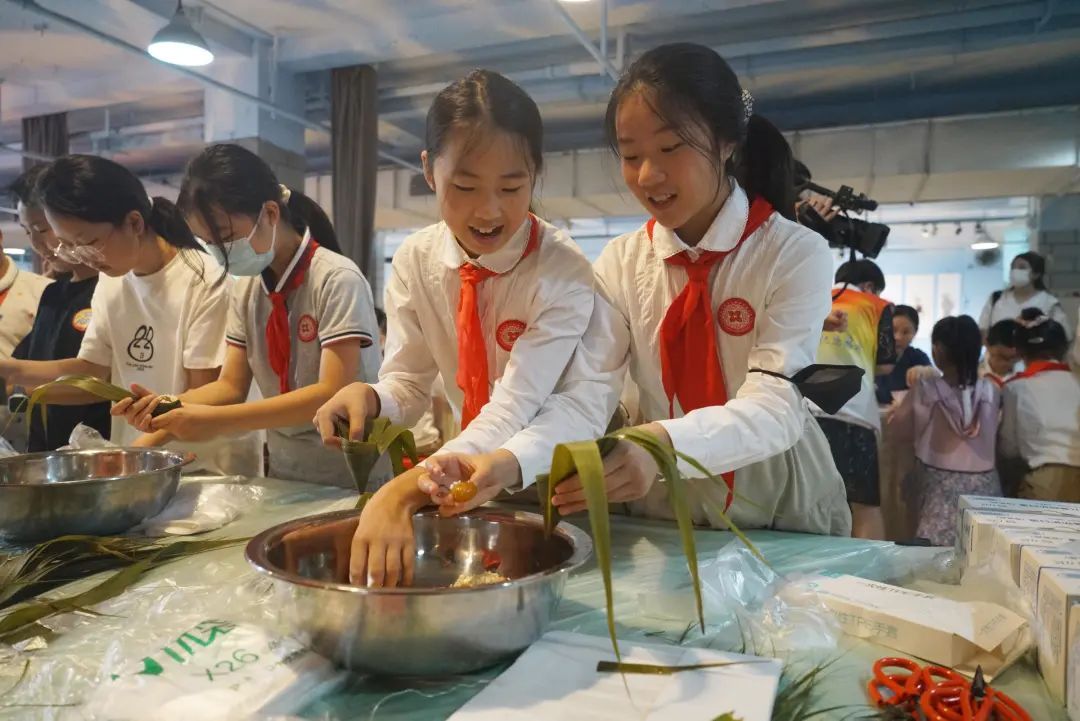 “这是我第一次包粽子,感觉还是蛮难的。”活动现场,不少“手忙脚乱”的小朋友这样告诉记者。从一开始手中的粽子好像被“五花大绑”,到老师走到孩子们中间手把手教学,很快一只只棱角分明的粽子就成型了。