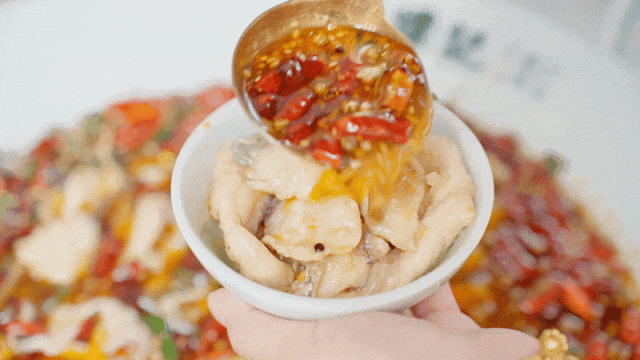 柔嫩的黑鱼片每一寸都吸收了香辣的精华,瞬间喷香四溢。大片鱼肉入口即化,鲜嫩爽滑,太过瘾了!
