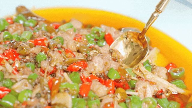 搭配鲜辣味的湖南本地辣椒一起下锅炒,香气立刻开始勾动味蕾,不知不觉一碗米饭就见碗底!