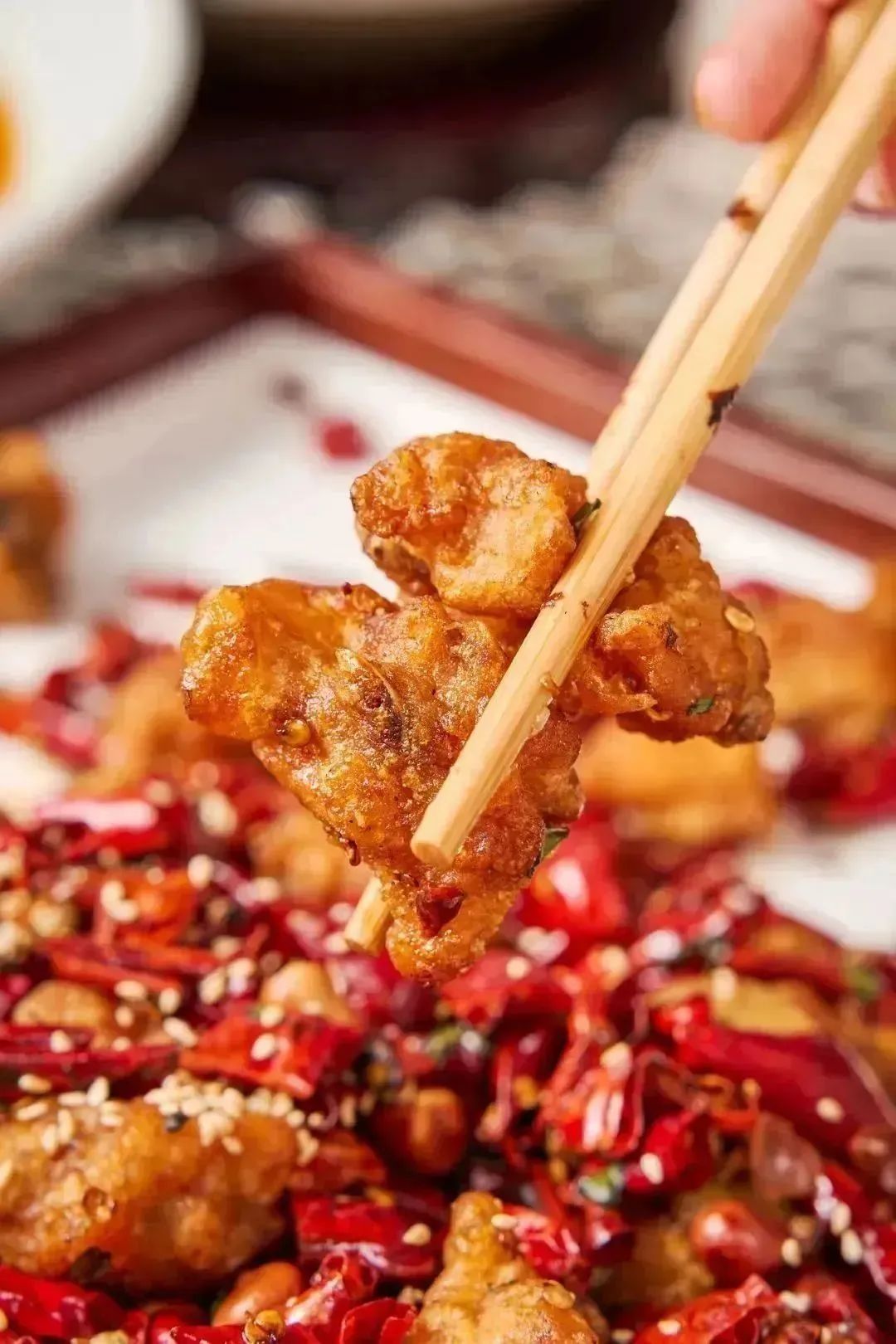 鸡丁色泽金黄,与火红的辣椒交相辉映;块块个头饱满、肉质厚实、入口酥脆;妥妥的肉比辣子多,试问这样的辣子鸡,谁吃不上头?