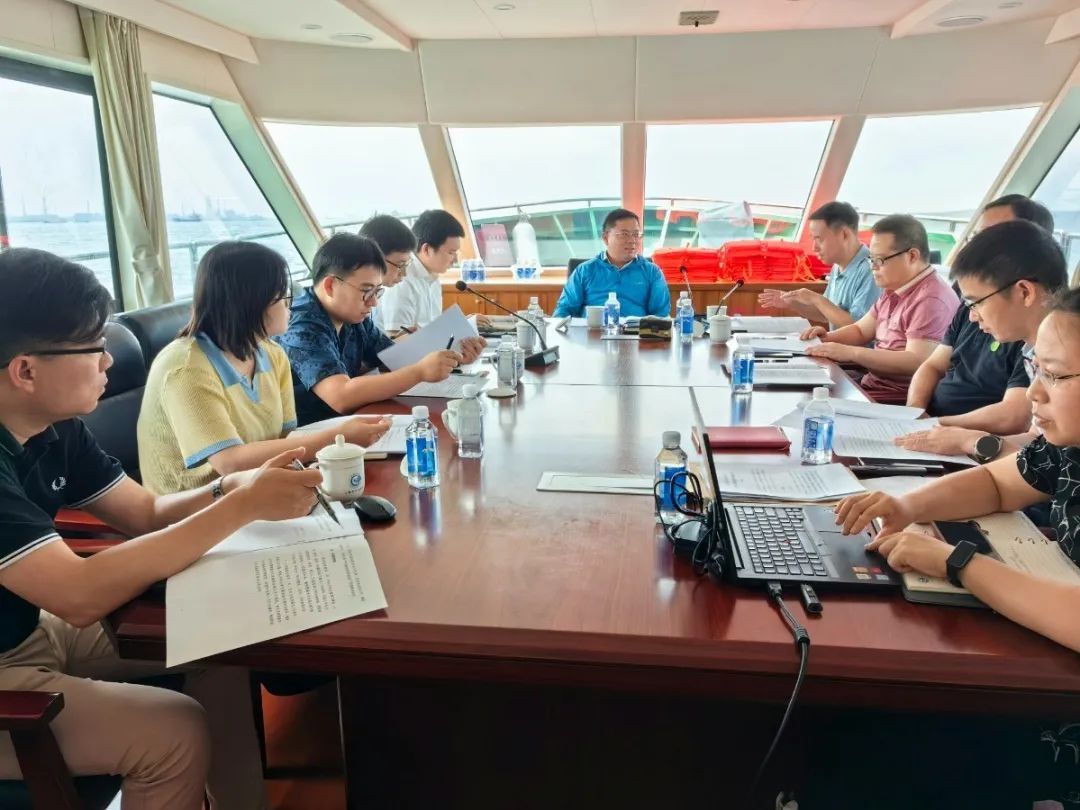 6月27日下午,市水务局副局长阮仁良带队乘坐水文巡测船赴长江口水域陈行水文站开展汛期检查,并推进本市水文测站建设管理相关工作。