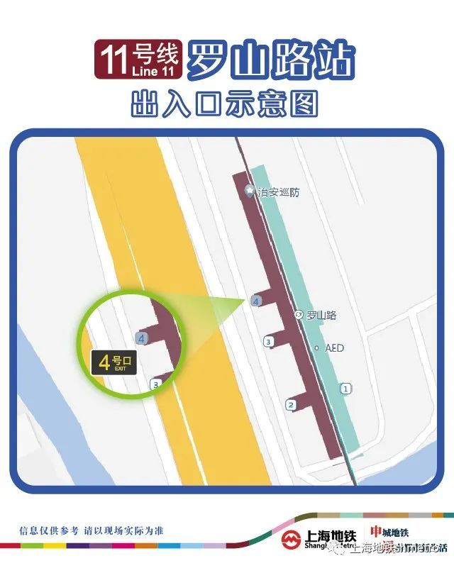 11号线罗山路站4号口施工已完成,具备投入使用条件,于2023年6月30日运营开始起恢复开启。