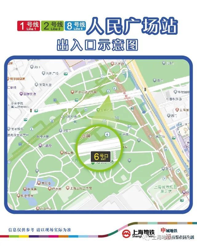 为配合加装自动扶梯施工,1、2、8号线人民广场站6号口及1号线新闸路站5号口将于2023年7月6日起封闭,1、2、8号线人民广场站6号口预计封闭3个月,1号线新闸路站5号口预计封闭4个月。届时,请乘客从这两站其他出入口进出,给您带来不便,敬请谅解!