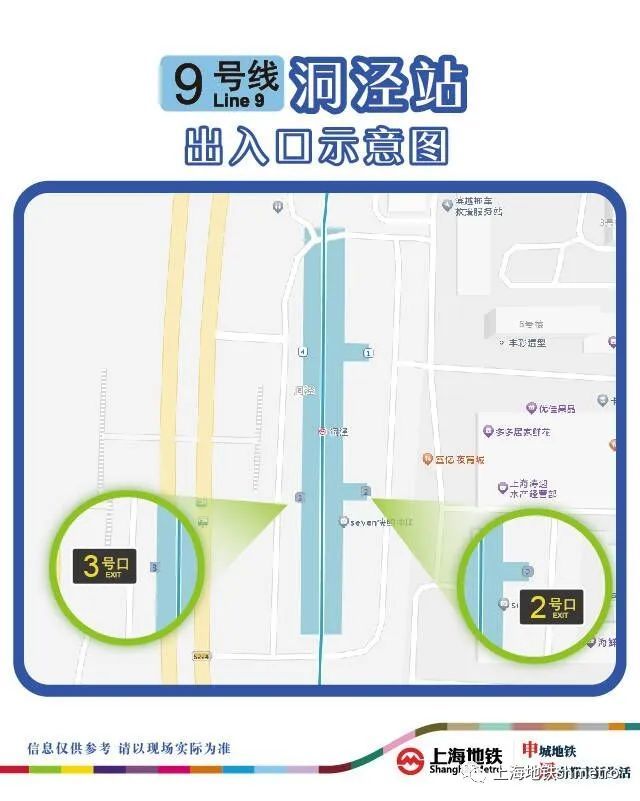 9号线洞泾站站2、3号口施工已完成,已具备投入使用的条件,于2023年6月30日运营开始起开启使用,暂采用只出不进模式。