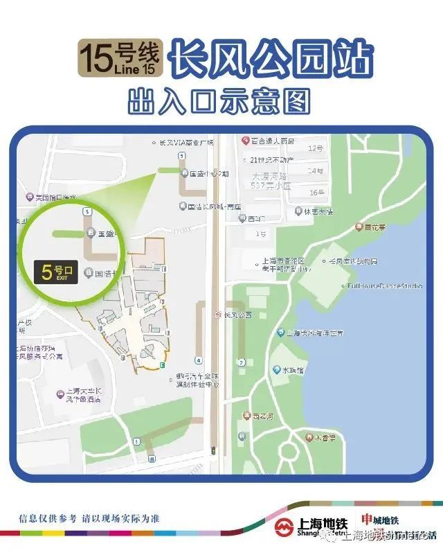 15号线长风公园站5号口国浩长风城地下联通通道内部施工完成,已具备投入使用的条件,计划于2023年7月1日运营开始起开启使用。